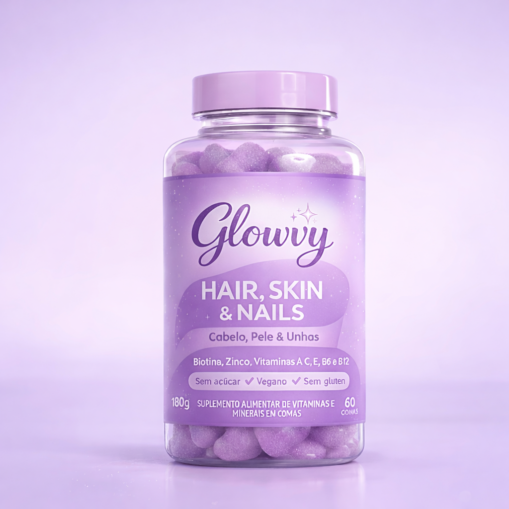 O Glowvy Hair, Skin & Nails é um suplemento alimentar desenvolvido para adultos que desejam cuidar da beleza de forma prática.